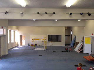 It was the front of the building that drew me in. I love the symmetry of it and the bell tower may be my favorite feature. We have done a ton of scraping and grading and leveling but we have a loooong way to go, the weeds are a constant battle and until we get a lawn in there is little hope of winning the battle. The house is on a busy highway, however it sits back from the road about 25 yards. Dusty is in the process of building a large berm at the road, he brings home extra dirt whenever possible and is slowly building up a barrier, behind the berm we will plant pasture grass and fence the area for cows, I will also have a chicken coop nearby so the chickens can range with the cows. Beyond the pasture we will have the front lawn that runs all the way to the house, the old elm tree will stay, the other tree in the front yard is not well and may not be able to be saved. The current handicap ramp will be torn out and we have visions of adding a covered, wrap around front porch. In the short term the entire exterior will get a fresh coat of paint, the louvers on the bell tower will be removed and a bell will be installed. Eventually we hope to stucco the entire building, not only will stucco smooth out many of the surface imperfections but also tie the addition (currently sided) into the block building. It needs a new roof, it doesn't leak but it isn't in great shape, there are 2 layers of cedar shakes and no tar paper.